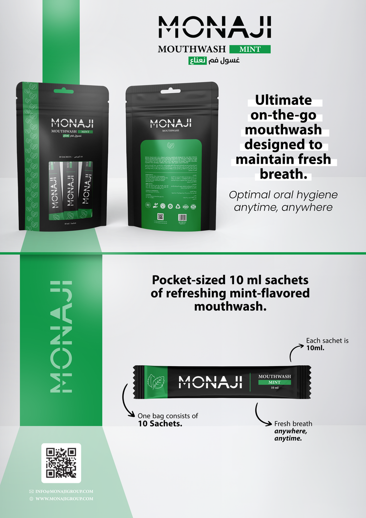 MONAJI Mouthwash is the ultimate on-the-go mouthwash designed for your busy lifestyle. MONAJI Mouthwash is formulated with powerful ingredients that effectively eliminate bacteria while promoting healthy gums and teeth. Whether you’re at work, traveling, or enjoying a night out, it ensures you can maintain fresh breath and optimal oral hygiene anytime, anywhere. Experience the refreshing confidence that comes with a quick swish of MONAJI!